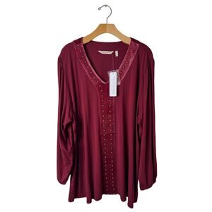 NWT Soft Surroundings Plus 2X Adornment Top in Cabernet Velvet 2FN17