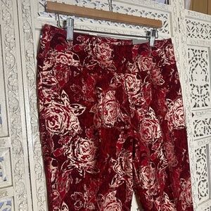 NWT Soft Surroundings Red & Gold Floral Rose Perfect Ponte Straight Leg Serrano Pants Sz Medium