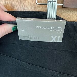 NWT Soft Surroundings Superla Pull On Straight Leg Pants. Women’s size XL (18). In the color Black. No visible flaws. Stretchy waistband. Front and back pockets. Made of a cotton blend.