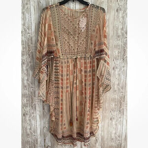 NWT Soft Surroundings Terra Fresca Midi Caftan Dress Size S Slip Liner Beige Red