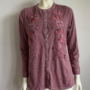 NWT Soft Surroundings Women’s L'Enchanté Floral Embroidered Blouse Rose PM