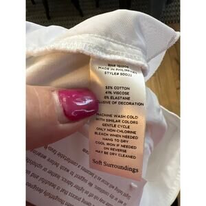 New with tags Soft Surroundings size 3X white cropped pull on jeans. Lace type trim down both legs. Waist is 2:” across. Inseam is 28” and rise is 13 1/2”.