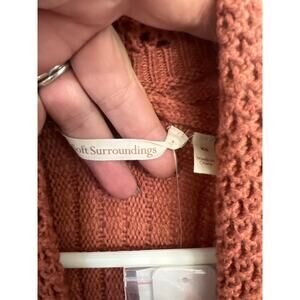 New with tags Soft Surroundings size XS salmon colored cardigan sweater. Hangs open in the front. Measures 19” from armpit to armpit and 36” long.