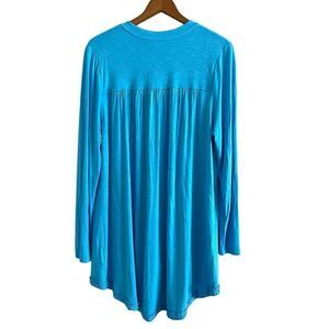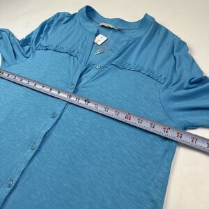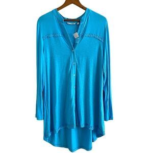 NWT Soft Surroundings tunic Top L Blue Graciela Button Front Blouse Boho coastal