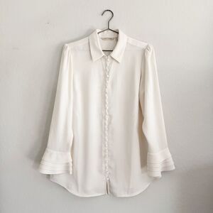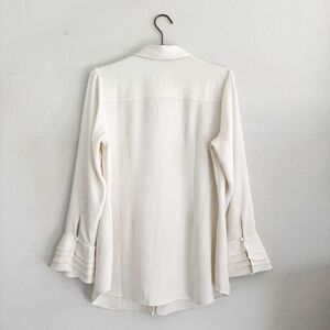 NWT Soft Surroundings Sonnet Button Up Blouse in Ecru Ivory Long Tied Sleeve M