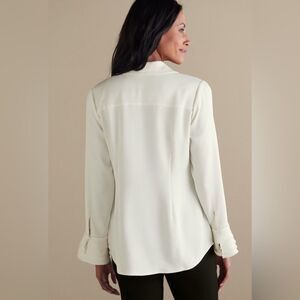 NWT Soft Surroundings Sonnet Button Up Blouse in Ecru Ivory Long Tied Sleeve
