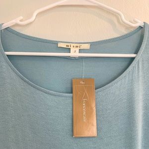 Wrinkled from storage, but otherwise perfect condition. New with tags. Super soft, stretchy and flowy. Can be dressed up or down. Lovely soft light blue color.