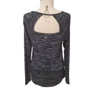 Very soft & cozy heathered gray light weight sweater/ shirt with an open back. New with Tags, Zelos brand. Size Small.