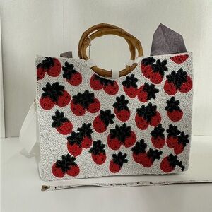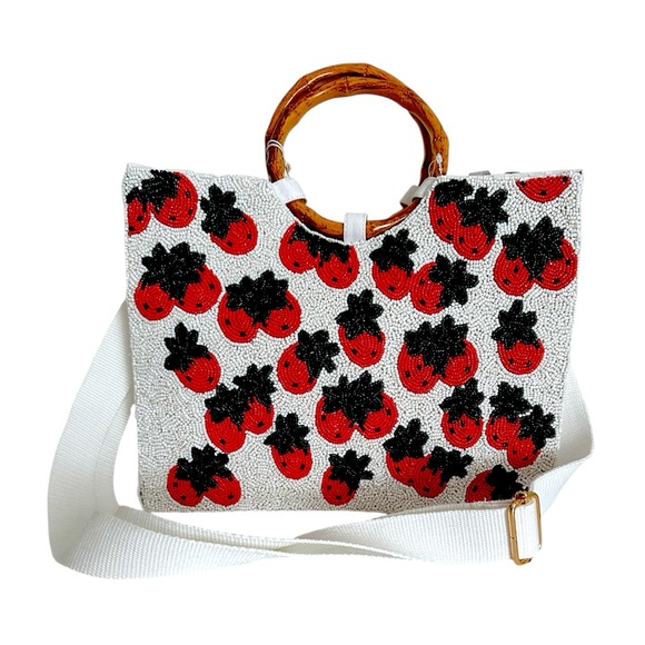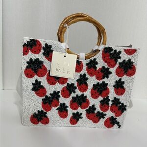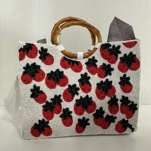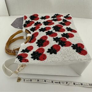 NWT Sol + Mer Strawberry Beaded Viral Purse Handbag with Bamboo Handles & White Strap