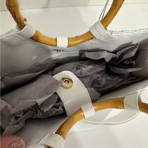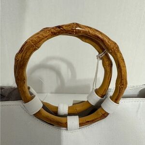 NWT Sol + Mer Strawberry Beaded Viral Purse Handbag w Bamboo Handles White Strap