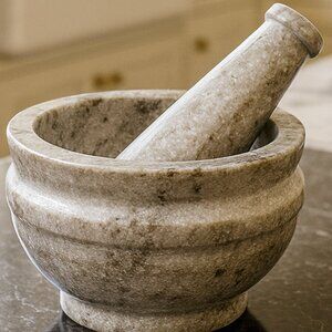 NWT Solid Marble Mortar and Pestle Set Farmhouse Stone Smudge Bowl Spice Gringer