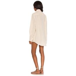 Solid & Striped Sloane Stephens Oxford Tunic Metallic Gold Chrome Linen Oversized Button-Up Shirt Coverup