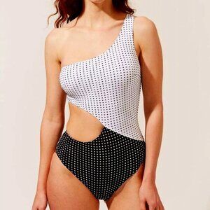 NWT Solid & Striped Swimsuit Womens L Black White The Claudia Baby Dot One-Piece