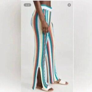 Blue orange yellow and knit crochet pants, perfect for a swimsuit coverup or at the beach