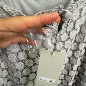 NWT Solitaire Gray Embroidered Boho Top Square Neckline 3/4 Tie Sleeves Size XL
