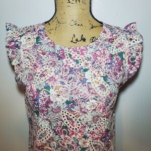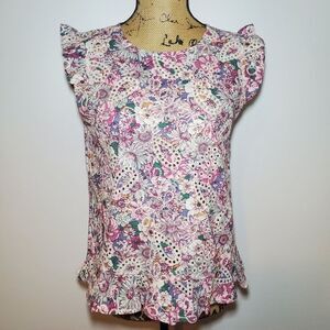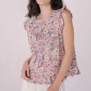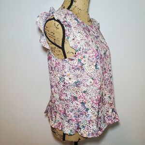NWT Solitaire Ruffle Sleeve Eyelet Embroidered Sleeveless Blouse Size S