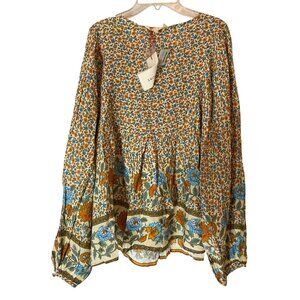 NWT Solitaire Womens Floral Peasant Blouse Cotton Rayon Blend Boho Style XL
