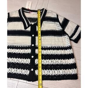 NWT Solitaire XL women’s short sleeve button down open knit cardigan.Blk & cream