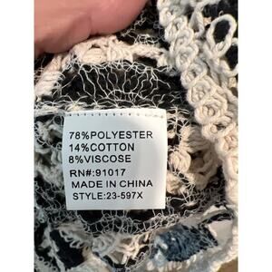 New with tags Sokitaire size 1X crocheted cardigan sweater. Cream and black. Measures 25” from armpit to armpit and 34” long.