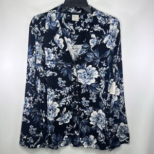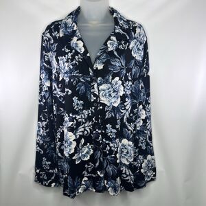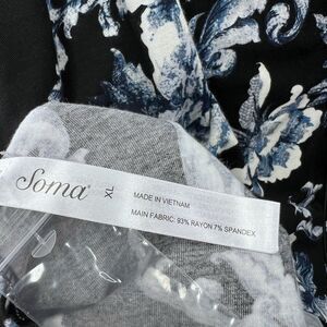 NWT Soma Cool Nights Notch Collar Boudoir Floral Black Top Sz XL Long Sleeve