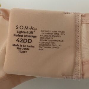 NWT Soma Lightest Lift Perfect Coverage Bra Pale Sand 42DD