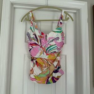 Make a splash in this brand new with tags Soma Swim tankini top featuring a stylish V-wire front and vibrant palm print design. This flattering top offers great support with adjustable straps and a comfortable fit.