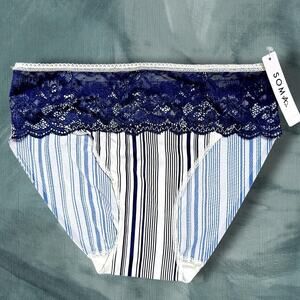 NWT Soma Vanishing Edge Seamless Microfiber Hipster XS Lace Stripe No-Show Panty