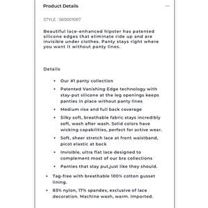 New with tags. Soma’s signature Vanishing Edge line — seamless microfiber design with patented stay-put silicone leg edges for a no-show finish.
