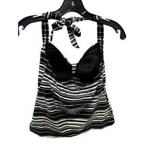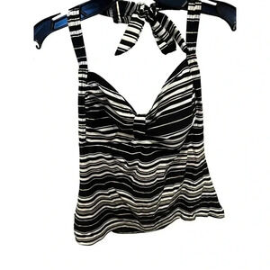 NWT Soma Women's Black & White Striped Sleeveless Tie Neck Tankini Top Size L