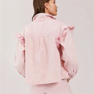 NWT Something Navy Magnolia shirt jacket Ruffle Pink Medium