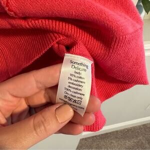 I adore this super pretty brand new with tags Something Navy pink cotton/cashmere blend embroidered hoodie pullover sweater top