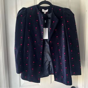 NWT Something Navy Velvet Puff Shoulder Blazer XXS