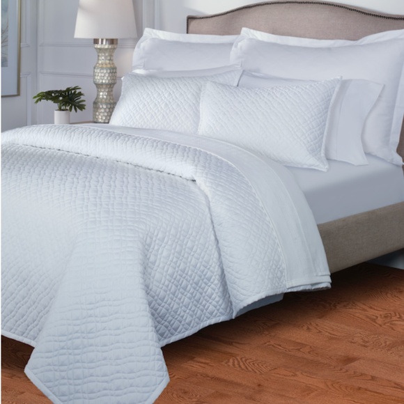 Features a contemporary box quilted pattern and a bias edge on all four sides of the coverlet and shams.