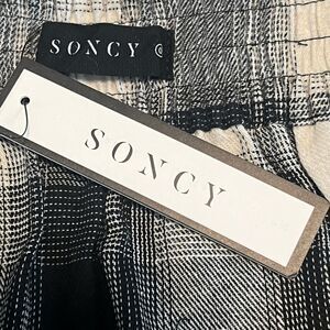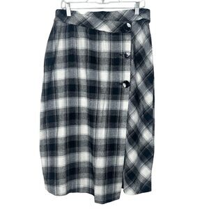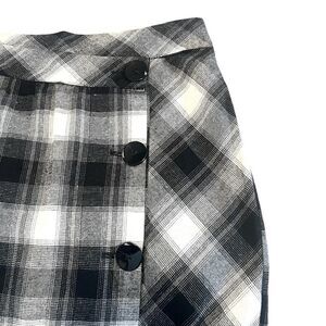 NWT Soncy Straight Pencil Wrap Skirt with Asymmetrical Buttons Black Cream Plaid