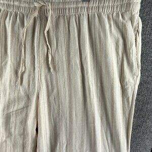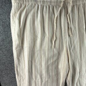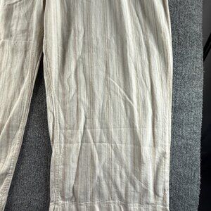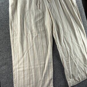 NWT Sonoma Linen Blend 2X Plus Pants Ivory Striped Drawstring Casual Straight