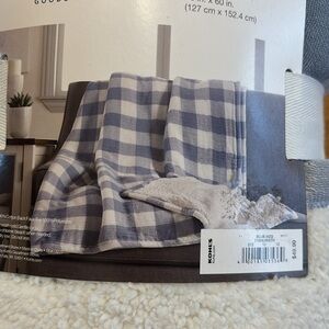 SONOMA Goods for Life Blue-Gray + White Checked Cotton + Sherpa Throw Blanket