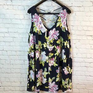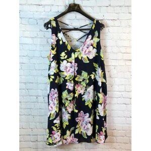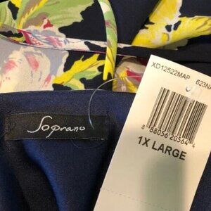 NWT Soprano Short Dress Navy Blue Floral Strap Back 1X Large