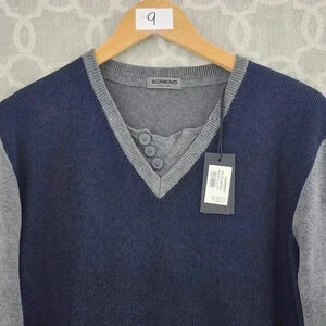 NWT Sorbino prima Linea V Neck Two Tone Viscose Blend Men's Sweater XL