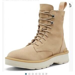New with Box Sorel Waterproof Suede Hi Line Lace Up Boots. Genuine leather. Ceramic, Chalk Light Tan Retail $185 More sizes available.