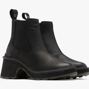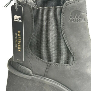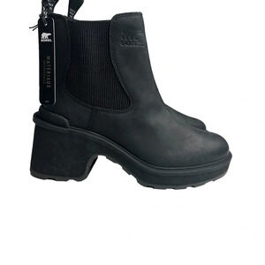 NWT Sorel Women's Hi-Line Waterproof Chelsea Boot in Black/Sea Salt. Sz: