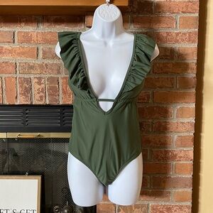 NWT Souqfone Ruffled Green One Piece Swimsuit