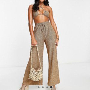NWT South Beach Oversized metallic beach pants in gold US 6