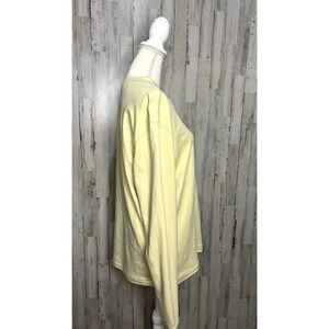 This men's yellow long sleeve T-shirt features a crew neck and a solid pattern. It is made from high-quality fabric and includes a button-up front. Suitable for fall, this regular size M shirt is ideal for casual outings or relaxed gatherings. New with tags (NWT). Keywords: men's T-shirt, yellow shirt, long sleeve, crew neck, button-up, fall fashion, casual wear, high-quality fabric, solid pattern, size M, men's fashion, new with tags, men's clothing, regular size, men's top.
