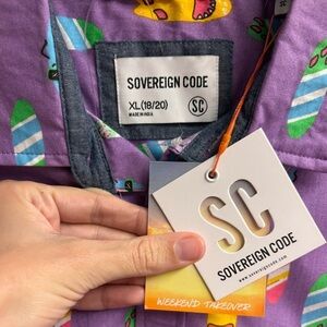 NWT Sovereign Code Kids Legacy Surfboard Short Sleeve Button Up Shirt Size XL