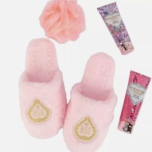 Slippers (8/9), 2 body scrubs (lavender & lavender rose, & pink loofah included