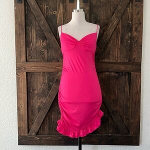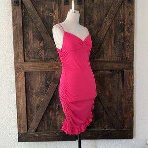 NWT Spaghetti Straps Bodycon Ruffle Hem Ruched Party , Cocktail Mini Dress