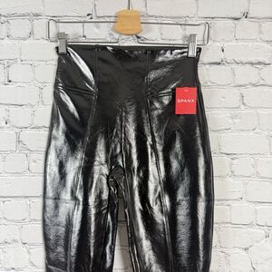 NWT Spanx Black Faux Patent Shine Leather Leggings Womens S High Rise Glossy