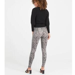 NWT Spanx Faux Leather Snake Print Shine Grey Leggings Size XL