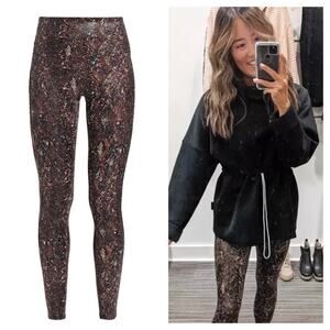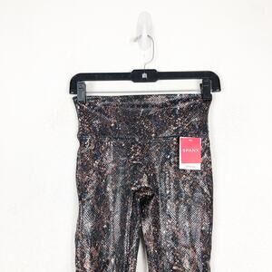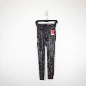NWT Spanx Faux Leather Snake Shine Leggings Small Mocha Stretch High Rise