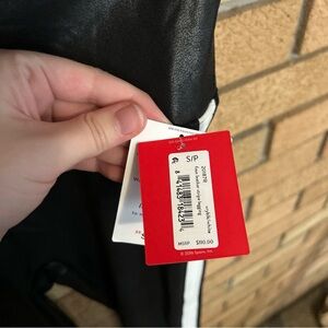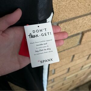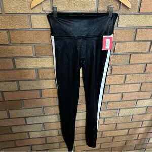 NWT Spanx Faux Leather Stripe Full Length Legging in Very Black/White Size Small
